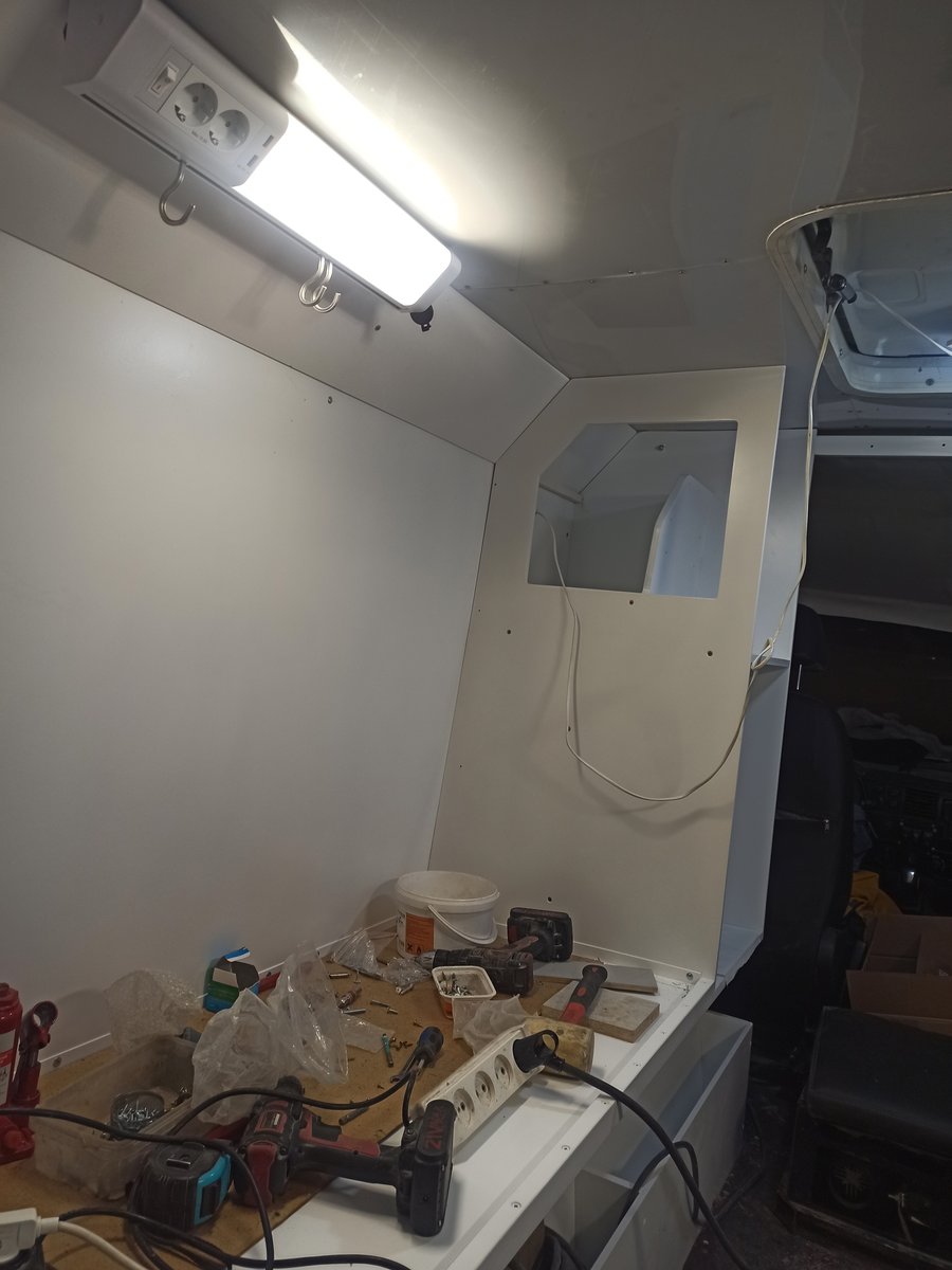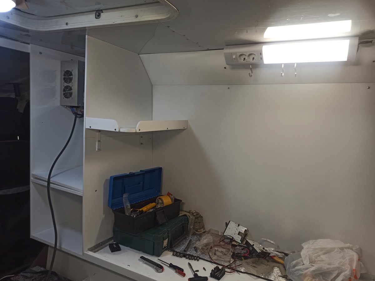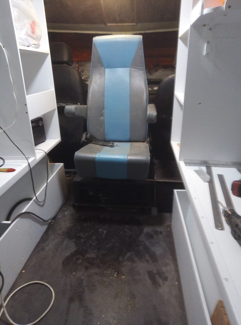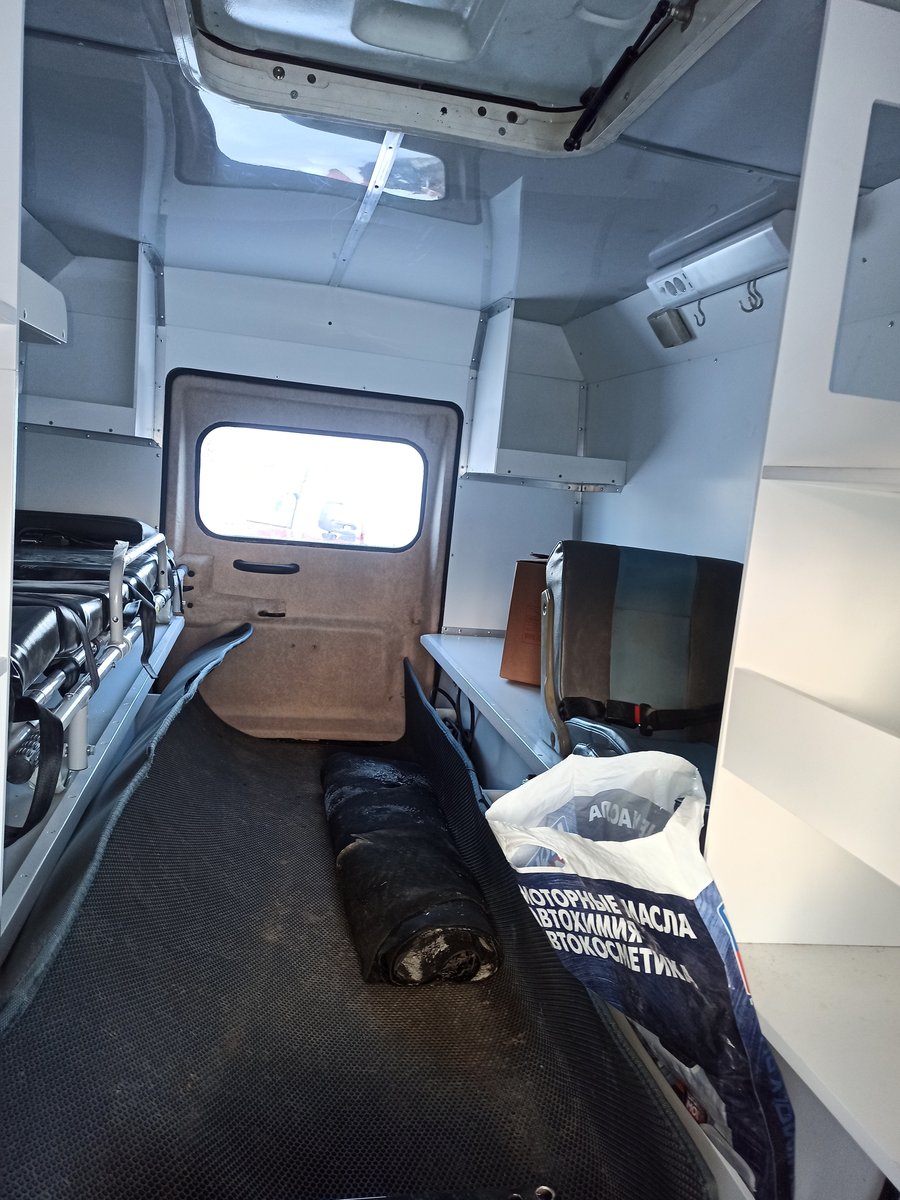 Трэкол покидает мебельный цех и отправляется на финальный этап работ к электрикам. У него уже есть мигалка, и вся мебель, и освещение, и розеточки, и всякое такое. Через 3-4 дня уже смонтируем специальное медицинское оборудование, и отправим на вахту.