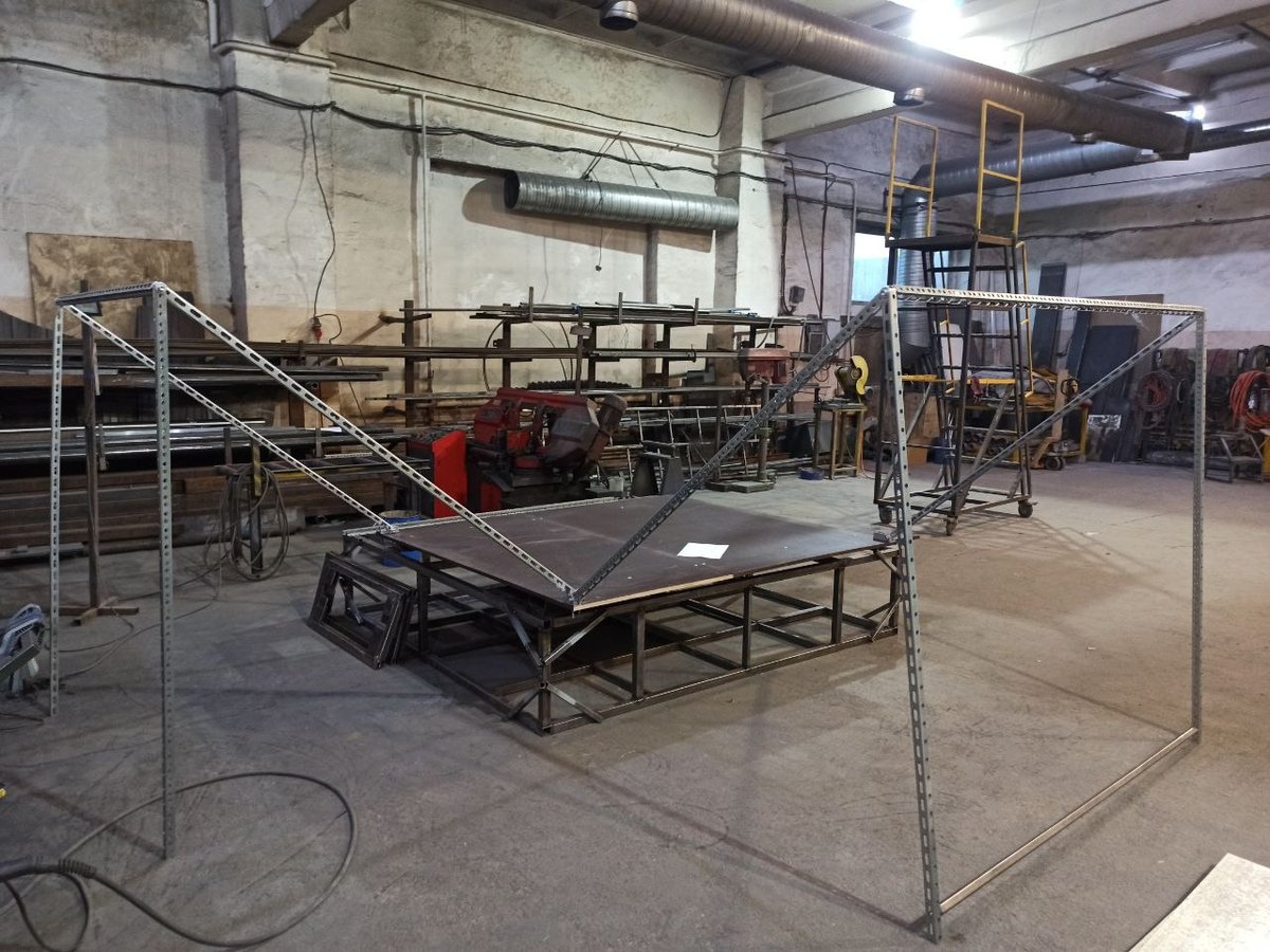 И маркиза в этот раз полностью нашей конструкции, на две стороны и со стенками. Она ещё делается, но вот как примерно выглядит каркас. Паучьи лапки :)
