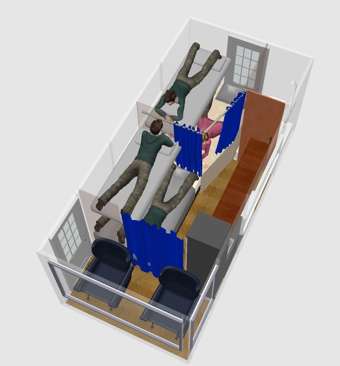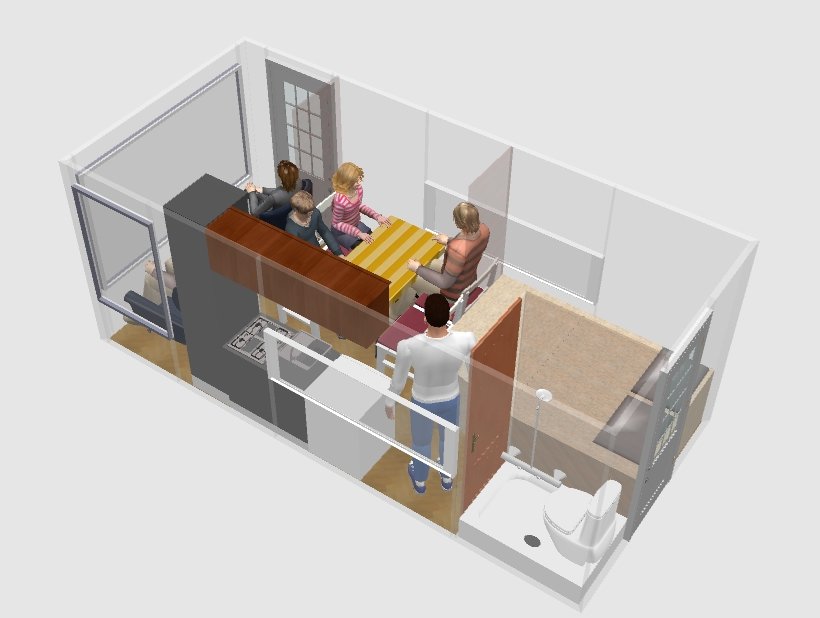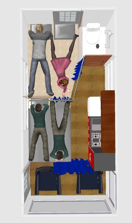 Размеры сняли, планировку продумали. Вроде ничего так выходит. Хоть и небольшая машинка, но на 5-6 человек сидячие и спальные места нашлись. Три спальных места - детские, не больше 160 см в длину.