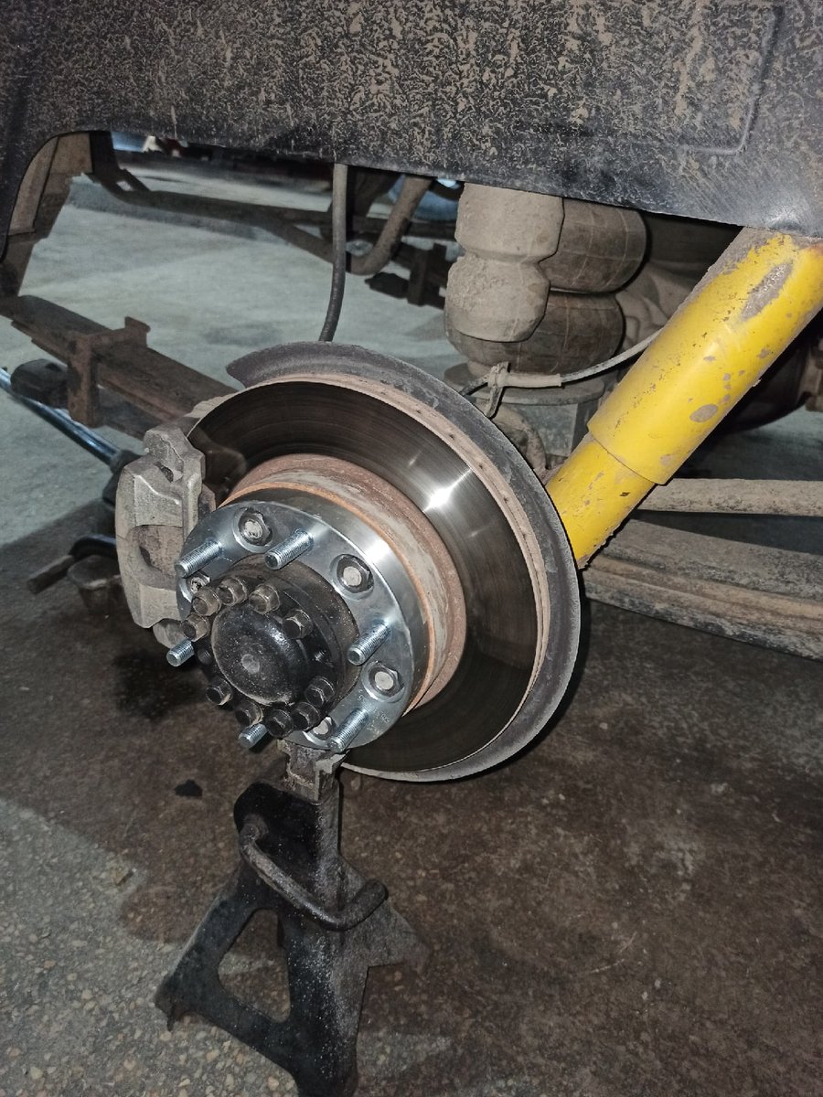 Решение проблемы подсмотрели у европейских производителей автодомов. Теперь задняя колея расширена с помощью ступичных проставок, по 25 мм с каждой стороны. Ну и новая хорошая резина на лето.