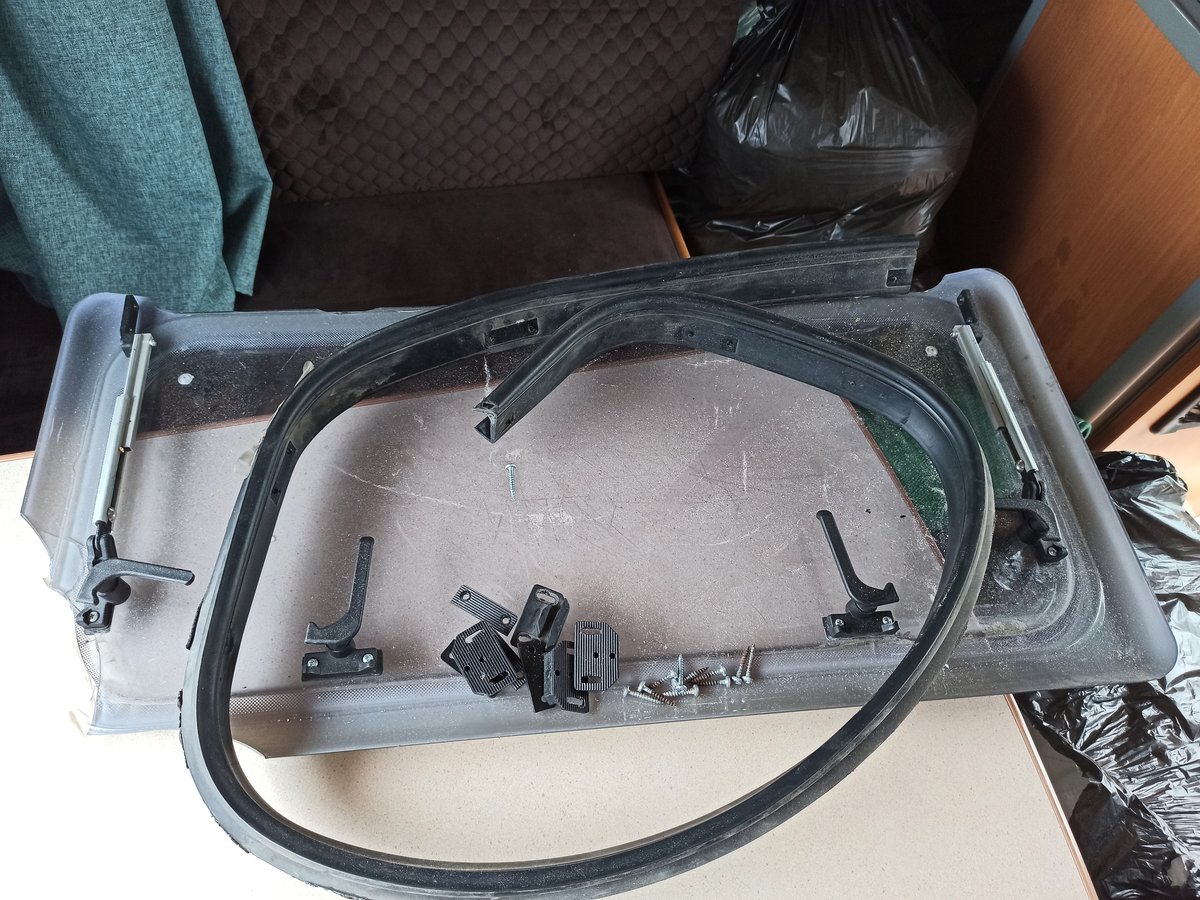 Потапычу наконец заменили сломанное окно, с которым он нам достался. Немецкое окошко уступило место отечественному. Выглядит здорово. Если оно переживёт дорогу в Крым и обратно, может и все остальные заменим на такие же, чтобы был комплект.