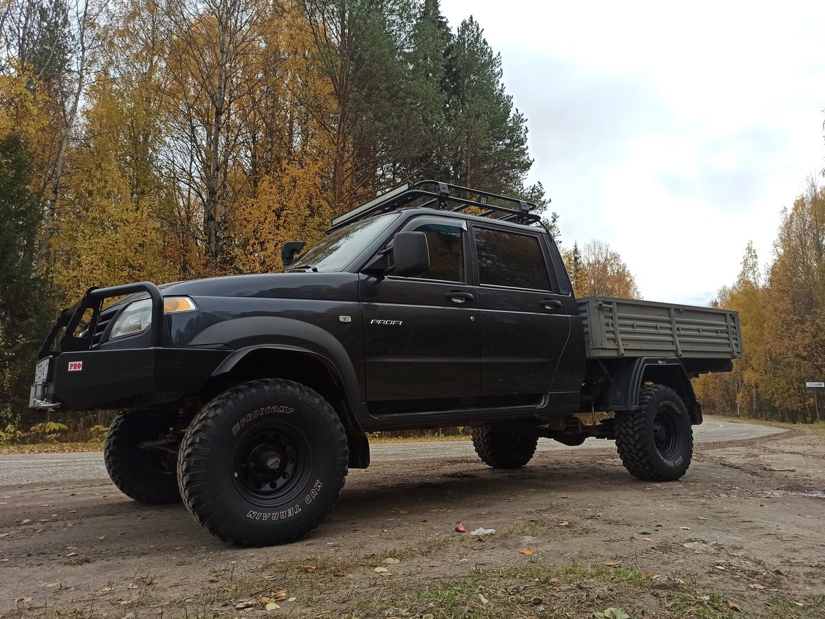 Мы пригнали заготовку для нового проекта. Это будет облегчённый летний медведь-проходимец. Лифт подвески, 33-ие колёса с МТ-шной резиной, шноркель, лебёдка, самоблок. За зиму сделаем съёмный жилой модуль в кузов, воду, отопление, электричество, летнюю кухню и уличный душ, веерную маркизу, и всё остальное, что нужно для покатушек по любым поверхностям. Будем выкладывать отчёты по ходу строительства.