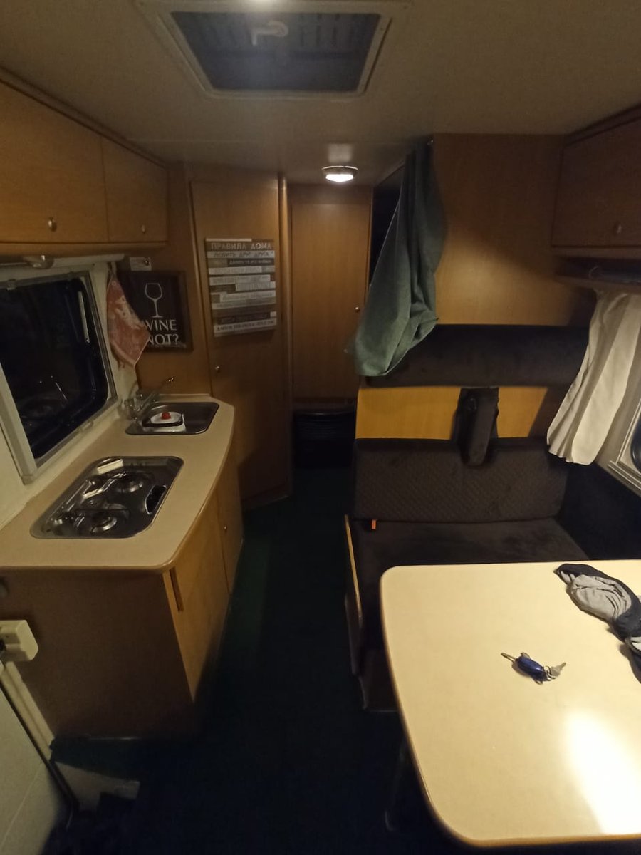 Теперь он встанет на доработки. Хотим врезать уличную дверцу в багажный отсек, поставить новый накрышный люк с вытяжным вентилятором, немного поиграться с мебелью, ну и так, всякое по мелочи.