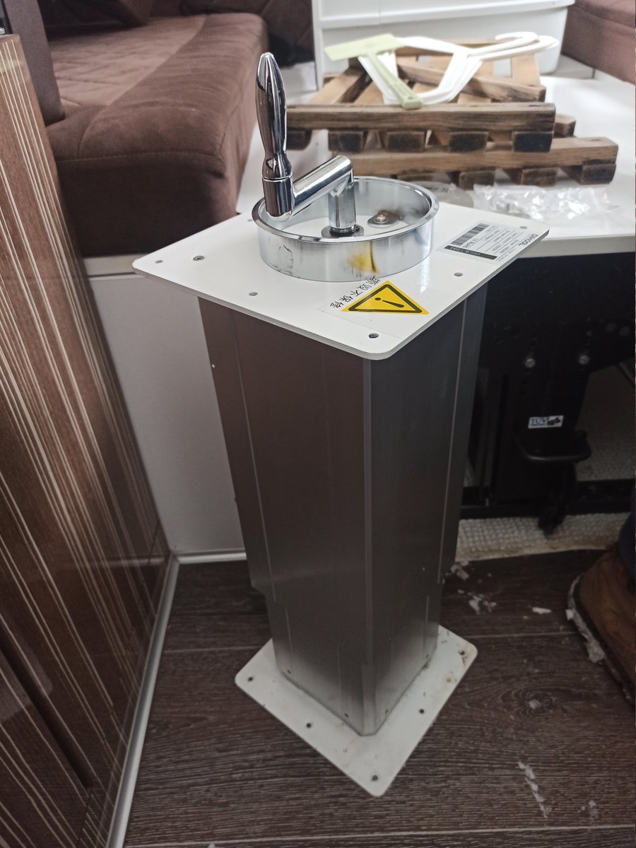 А ещё братья-китайцы прислали нам новую телескопическую подъёмную опору для стола, типа "татами-лифт". Должно быть удобнее, чем старая. И столещницу тожее по шумок заменим, а то она уже успела треснуть.