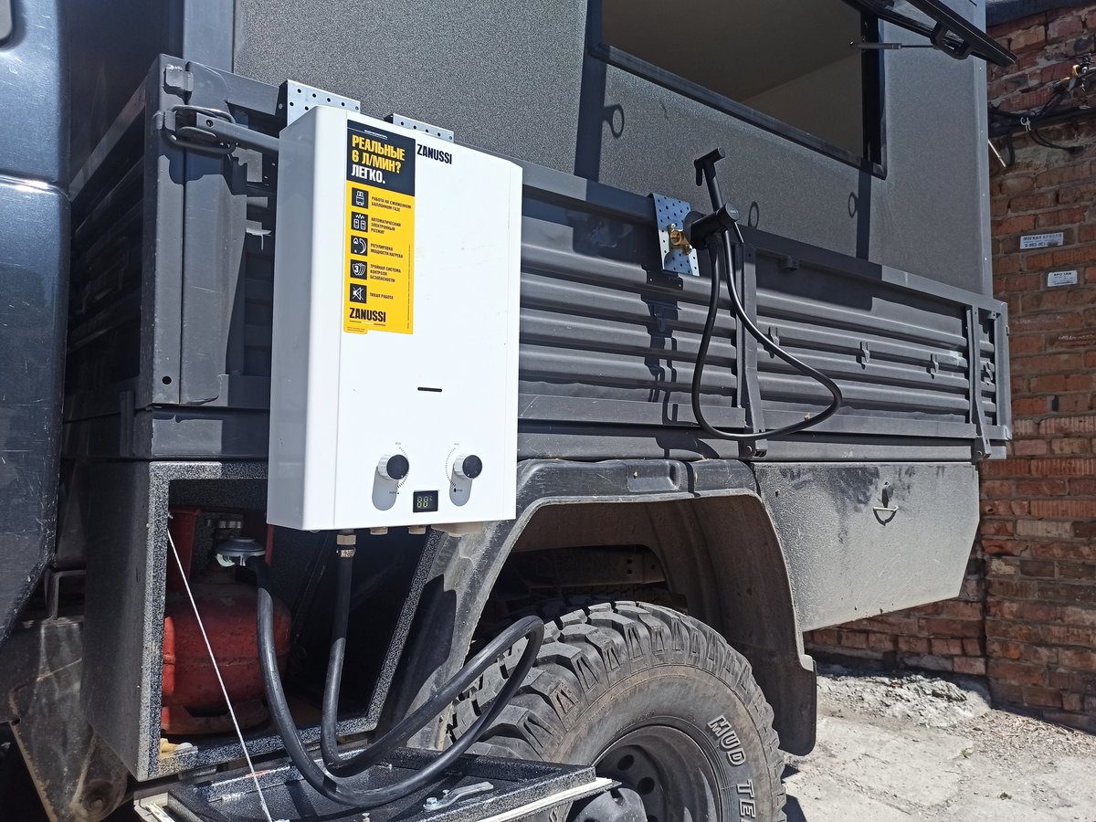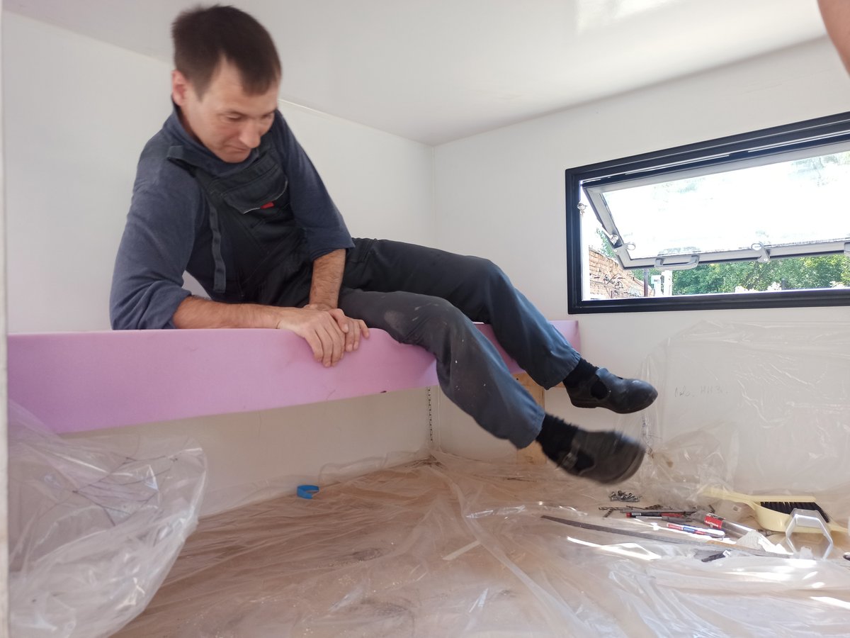 Барибал сегодня примеряет откидное спальное место, душ, водонагреватель. Кажется, выходит всё примерно так, как запланировано. Только дольше :)