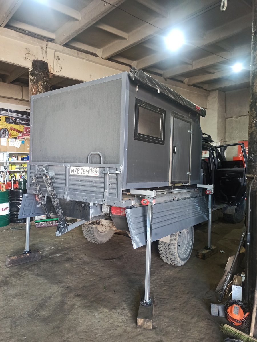 Заодно опробовали домкратные опоры для поднятия жилого отсека. Работают, как запланировано. Будочку можно поднять, уехать, и оставить её на стоянке.
