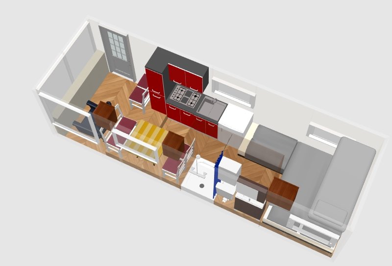 Заказчик попросил побольше спальных мест. Получается 6-7, больше никак не втискивается :)