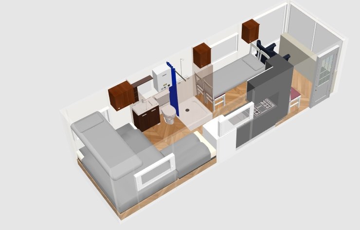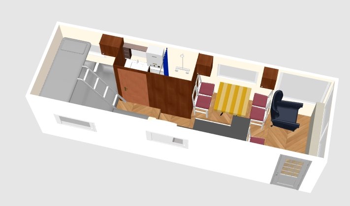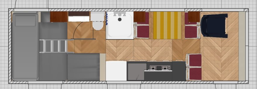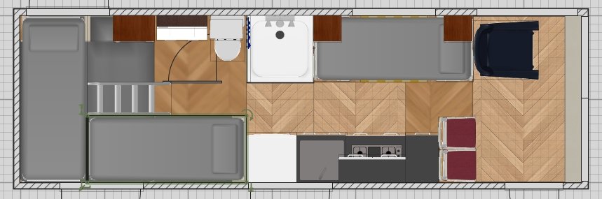 У нас тут появился потенциальный заказ на изготовление автодома из вот такого автобуса. Мы как раз давно хотели поиграться с автобусом. Вот примерно такая планировочка вырисовывается.